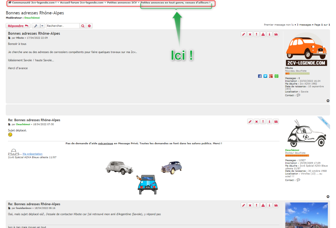 Pour savoir où tu es (sur le forum !!), il faut regarder plus haut !louislarénov a écrit : ↑18 avr. 2022, 08:16 Oui, mais sujet déplacé où?, J'essaie de contacter Mbote car j'ai retrouvé mon ami d'Argentine (Savoie), y répond pas