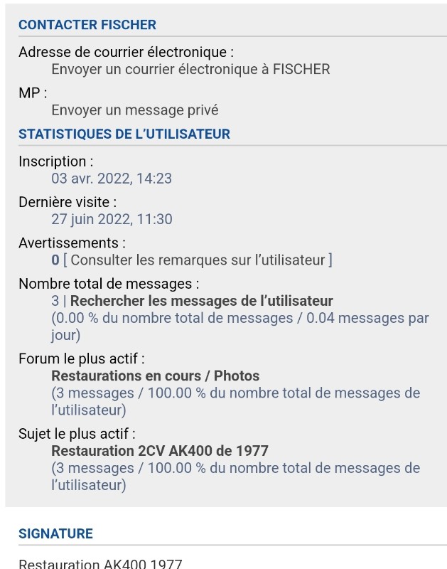 Et je m'excuse Froggy2CV, je pensais ce site plus convivial entre 2CV.