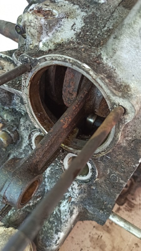 Tout content de moi, je commence à le démonter et là... Horreur !!! Les bielles et le vilebrequin sont pleins de rouille !
