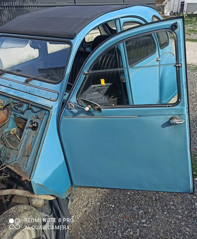 Je viens vous présenter la 2CV6 que je suis en train de rénover. Elle est de 1983, apparemment couleur Bleu Céleste.