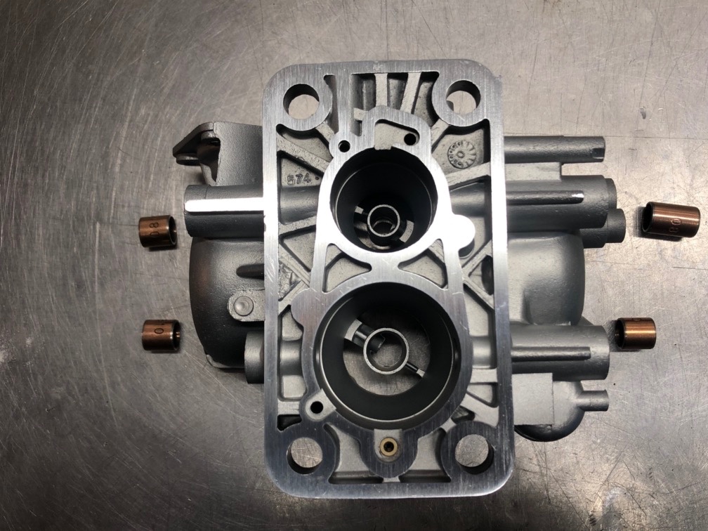 * alésage à 10 mm * pose de la bague (collée) * alésage à 12 et pose du joint spi 5 - si tu le désires, je peux t'effectuer ce travail : tu m'envoies le corps-cuve, les deux axes avec leurs ressorts et les deux papillons ; j'alèse les 4 paliers et pose de joints spi, je te remets les papillons en place et je te règle la PRN ou l'ORF (selon le carbu)(ici, c'est une ORF)(comme tu as déposé les papillons et réalésé le corps-cuve, tu ne retrouveras pas forcément la position initiale du papillon 2 corps et donc, l'ORF est à remesurer). C'est un travail de routine dans le cadre d'une restauration de carburateur !
