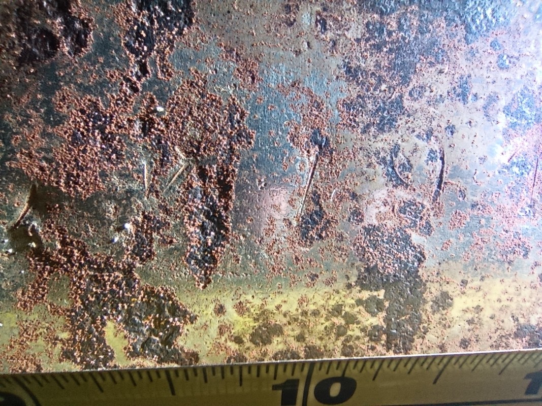 J'ai pu faire apparaître le mien à l'aide d'un "dremell" avec une petite brosse métallique au bout.