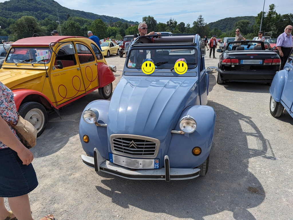 Un peu plus tard dans la matinée, la 404 s'en va juste au moment où arrive une deuche que j'ai déjà vue en photo !