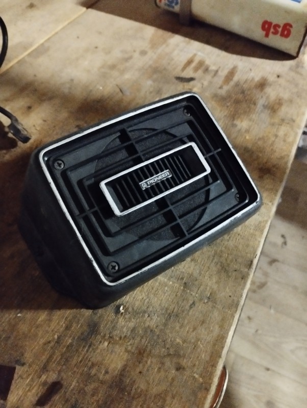 J'ai racheté pour une modique somme un superbe autoradio à K7 et de non moins superbe enceintes Pioneer qui vont ambiancer l'intérieur de la 2cv....