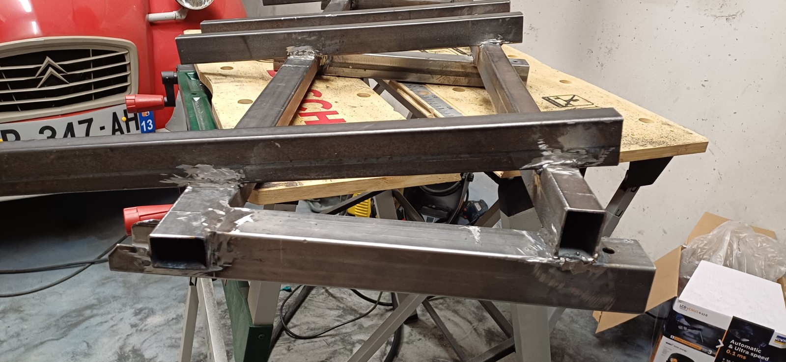 Pour la fabrication, j'ai pris des profilés d'acier 40x40 et 27x40 en épaisseur 1,5mm. Cela fait quelque chose de très rigide.