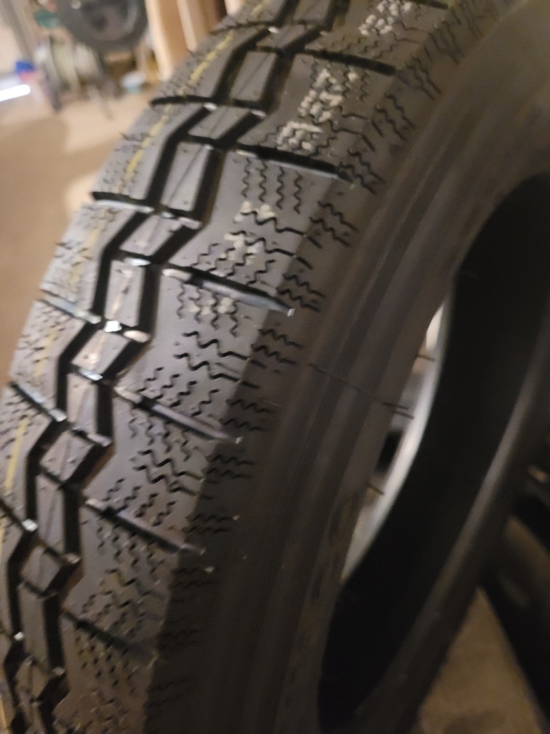 Sur mon bolide, je suis équipé en pneus 135. Des Nankang neufs (ou quasi) à l'arrière, et une marque française (inconnue ?) à l'avant. Pas trop usés mais très secs. Pour ce que je roule, ça fait l'affaire, mais la largeur et l'aspect ne me conviennent pas, je trouve ça moche, surtout pour une ancienne.