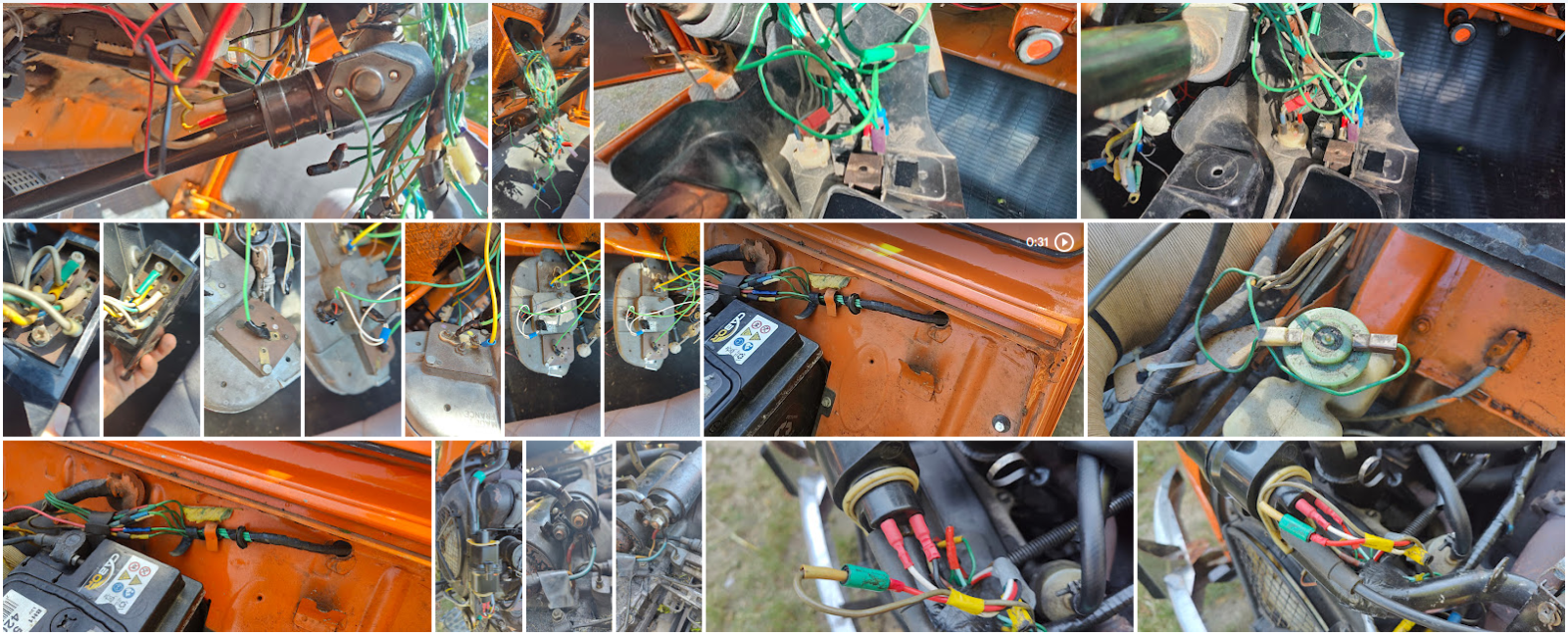 - J'ai finalisé la revue de tous les branchements sous la calandre avant, avec remplacement des câbles des clignotants et des phares avant
