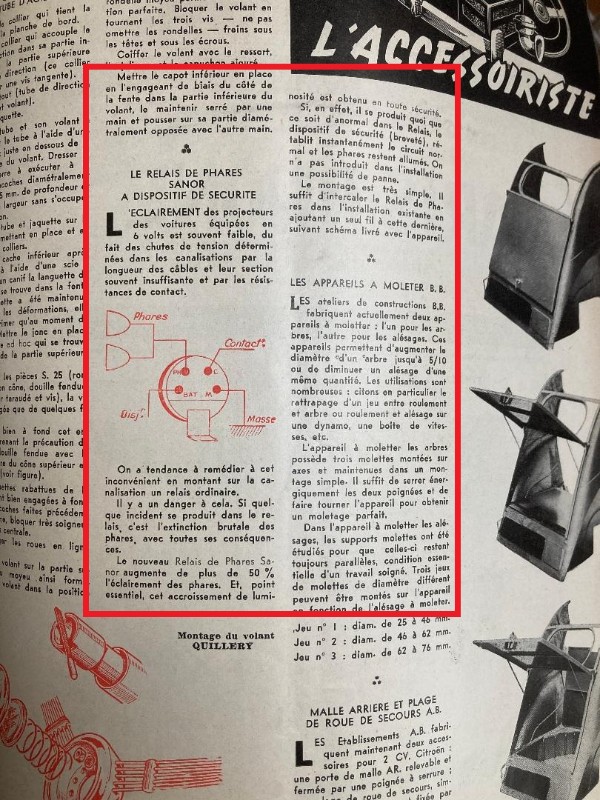 En feuilletant dernièrement une vieille RTA de 2cv type A, il y avait dedans une pub pour un relais MIXO, que l'on pouvait intercaler dans le circuit et qui pouvait améliorer l'éclairage de 25% !