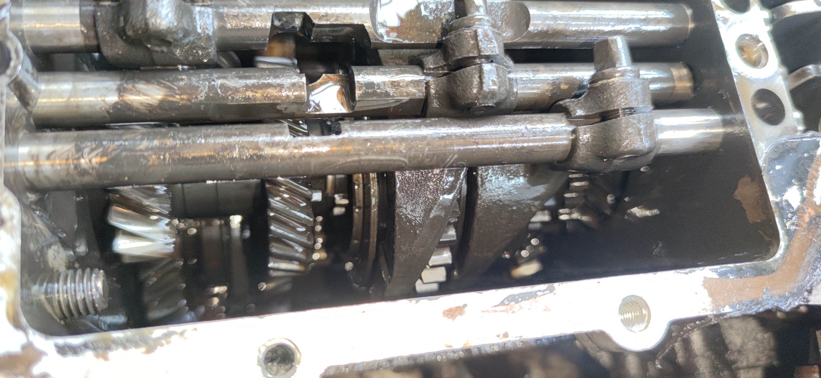 A force de zigouner ça tourne à nouveau, est-ce que ça dépasse assez pour espérer que la synchro soit revenue à sa place ? Bon je vois cependant toujours pas comment remettre tout ça au point mort...