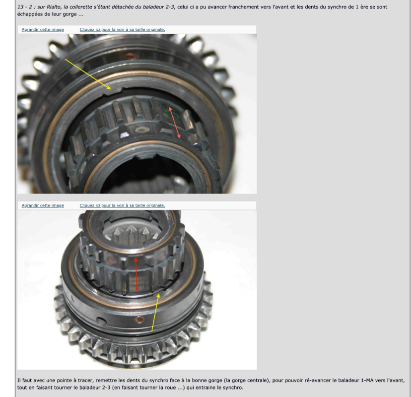 Et pour peu que le synchro femelle du baladeur 2/3 avance trop, tu fais sortir les cannelures du baladeur 1/MA, de leurs gorges du baladeur 2/3 ...