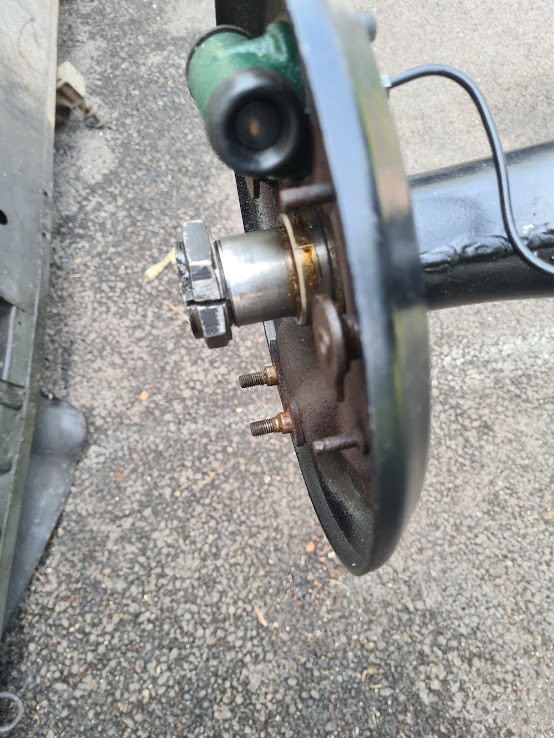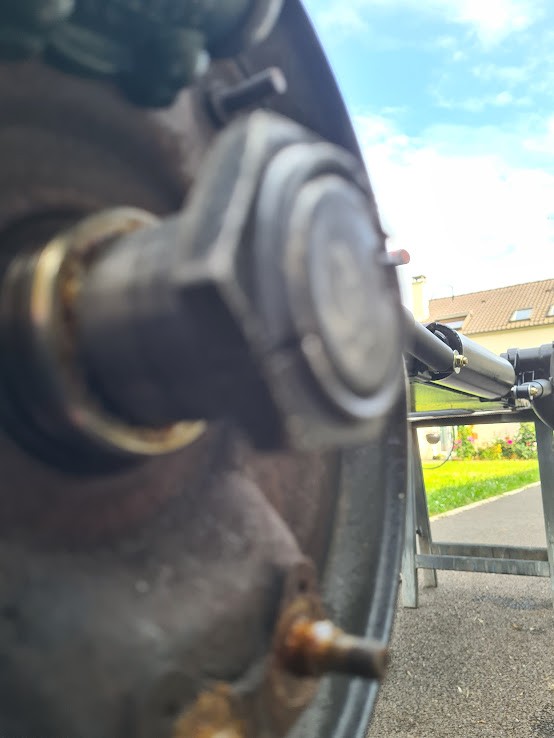je reviens sur ma mésaventure du pas de vis abimé. j'ai réussi à le rattraper et je vais joindre les photos. déjà j'ai fini par retrouver l'ancien écrou, ensuite je l'ai scié en 2 morceaux. j'ai accouplé ces 2 morceaux au bout du filetage près flasque. j'ai mis la clé sur ces 2 parties et j'ai dévissé cet ensemble. cela m'a permis de referre le bout filetage abimé, et ensuite j'ai pu revisser le nouvel écrou. auparavant j'ai mis un coup de filon pour nettoyer le filetage. je partage cette mésaventure car il ne suffit pas de prendre et quand c'est possible il faut donner.