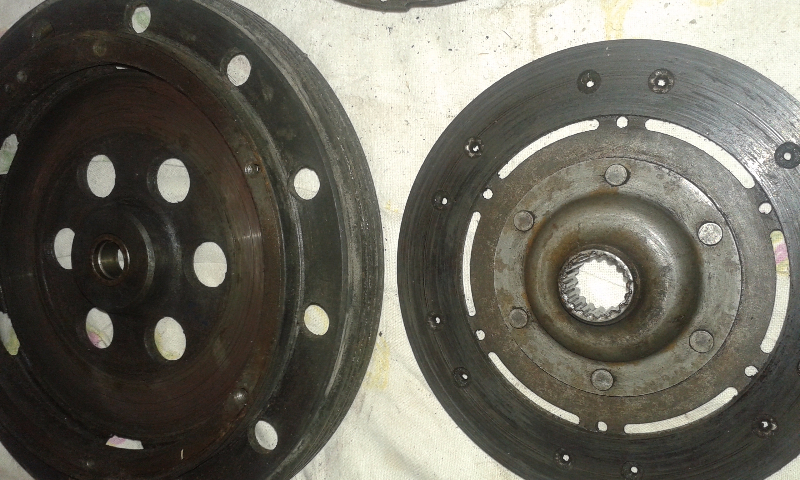 Pour finir, je pense remonter le disque neuf avec la butée à roulement en gardant le plateau à trois doigts. Du coup je me retrouve avec un plateau à diaphragme qui ne me servira pas pour l'instant.