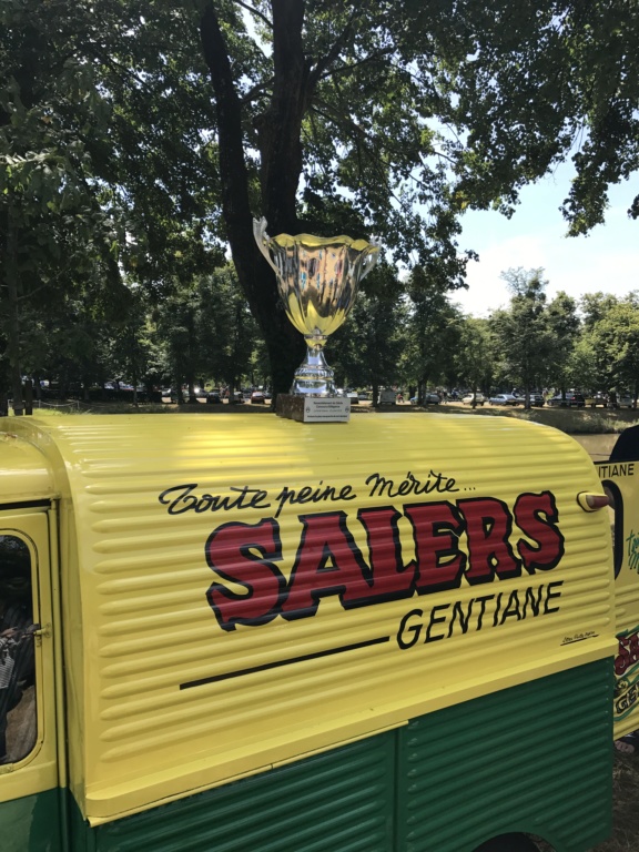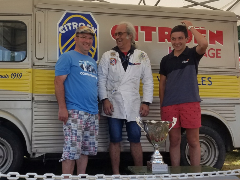 Parmi 30 voitures exceptionnelles, tous plus belles les unes que les autres, c'est une fourgonnette 2 CV qui a remporté le 1er prix d'authenticité. Cela rejaillit sur tous les deuchistes. Ils peuvent se rhabiller avec leur DS, Tractions et autres SM.