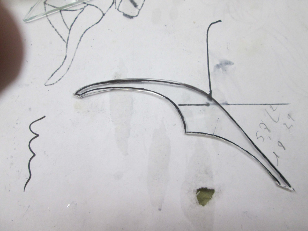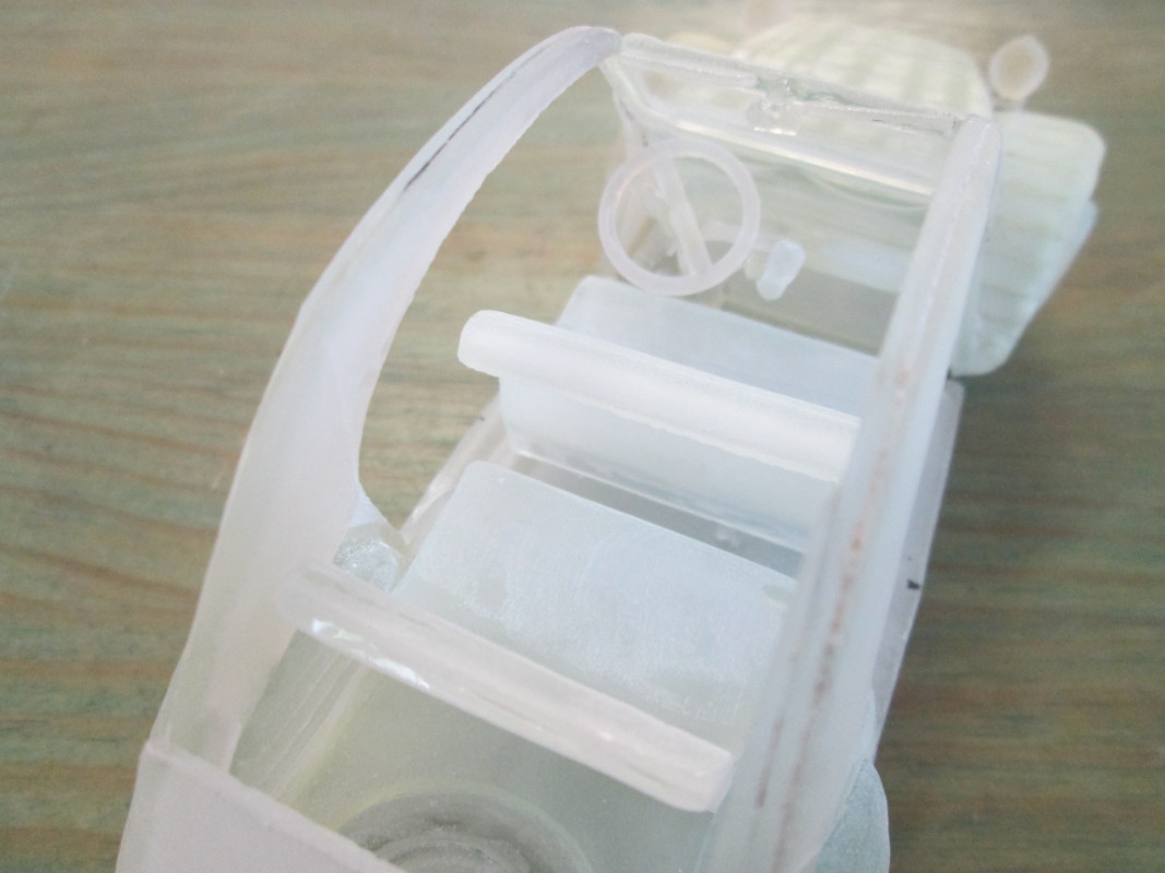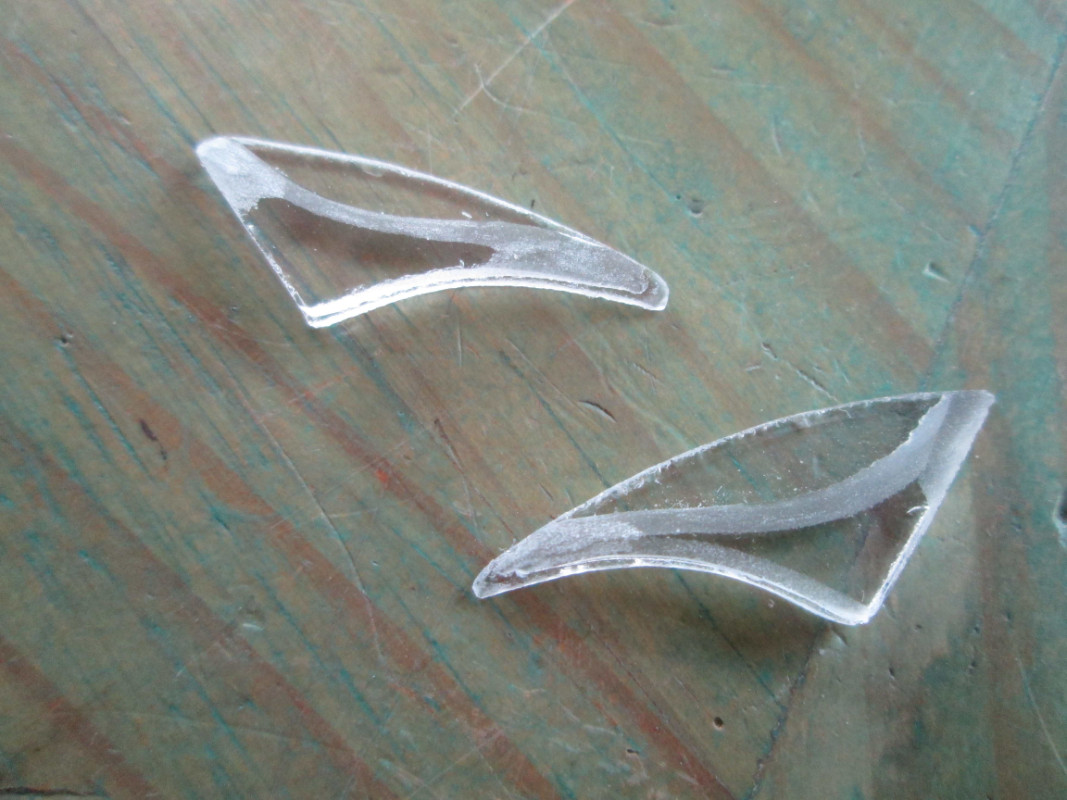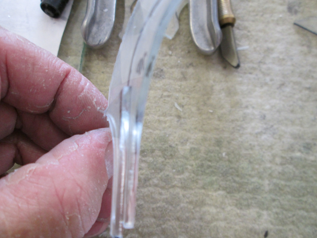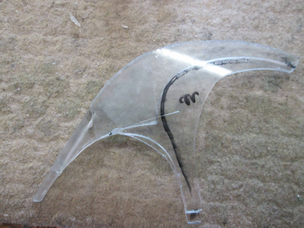 Les marques que tu vois sont le fait que les ailes avant et le capot sont fait à partir de lamelles de verre de 3m/m d’épaisseur et de 4m/m de large. pour le montage, j'ajuste les champs des lamelles entre elles et ensuite elles sont collées champ contre champ. Je me sert d'un moule en carton ...