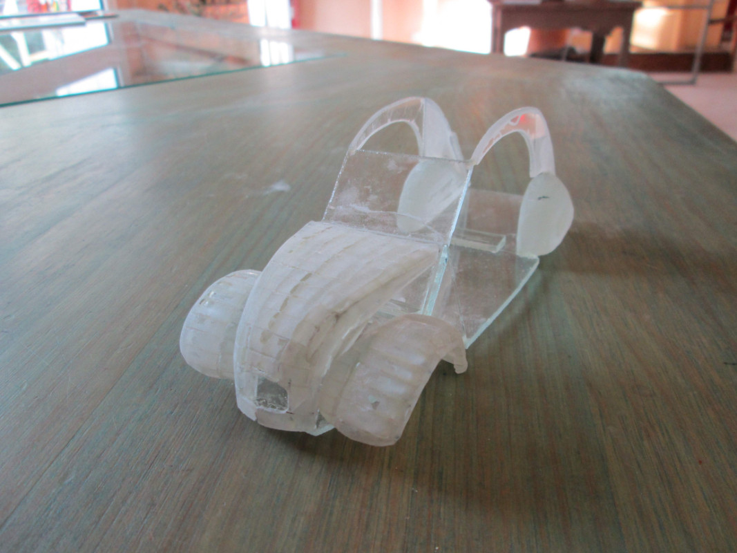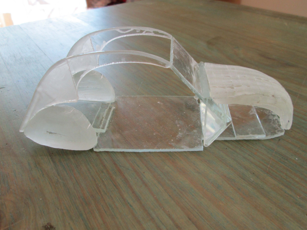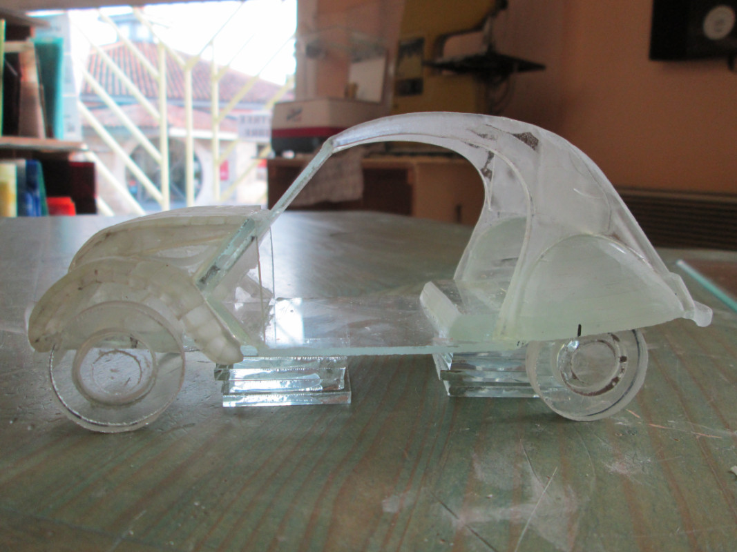 J'ai retrouvé les photos. Finalement, c'était ma première maquette en verre. je reposterai les photos de la deuche et celles des maquettes suivantes. Il m'en reste une, la maquette de ma première voiture, une 4CV découvrable, j'ai refusé de la vendre