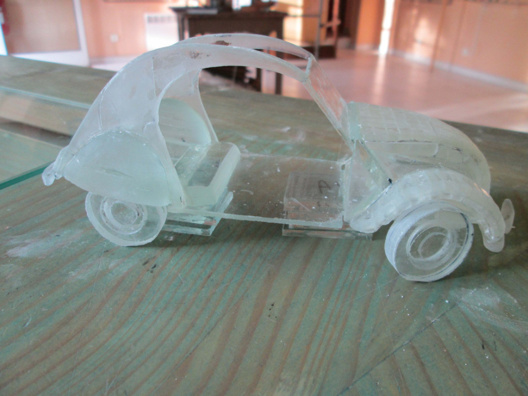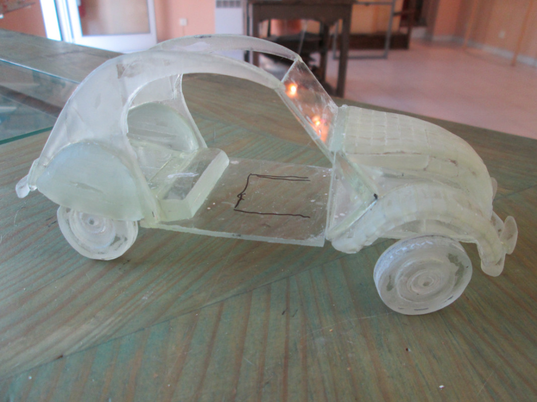Je pense que la 2CV que tu as en verre doit être en verre moulé parce qu'en verre soufflé c'est impossible à faire. bien souvent les gens confonde le verre filé, soufflé ou moulé.