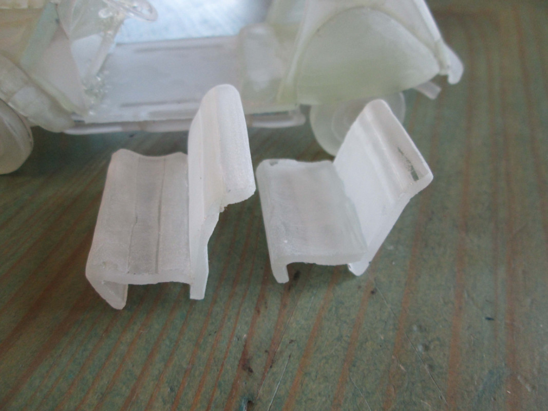 Sablage de l'ensemble, fabrication et pose des sièges, volant, levier de vitesse et pédales, installation des portes