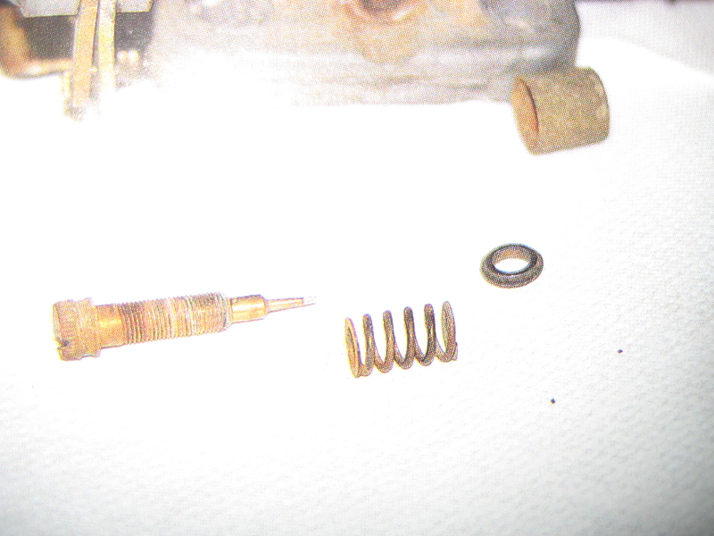 Il y a un ressort sous la vis qui fait office de système anti desserrage. Mais peut-être pas sur tous les carbus !