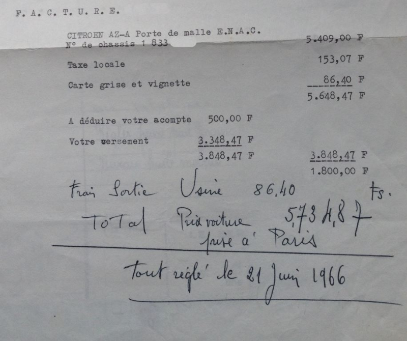 tu as la facture citron d'origine un peu plus haut juin 66 j'ai retiré la fin du numéro de série mais dans ce tableau elle se situe dans les AZL