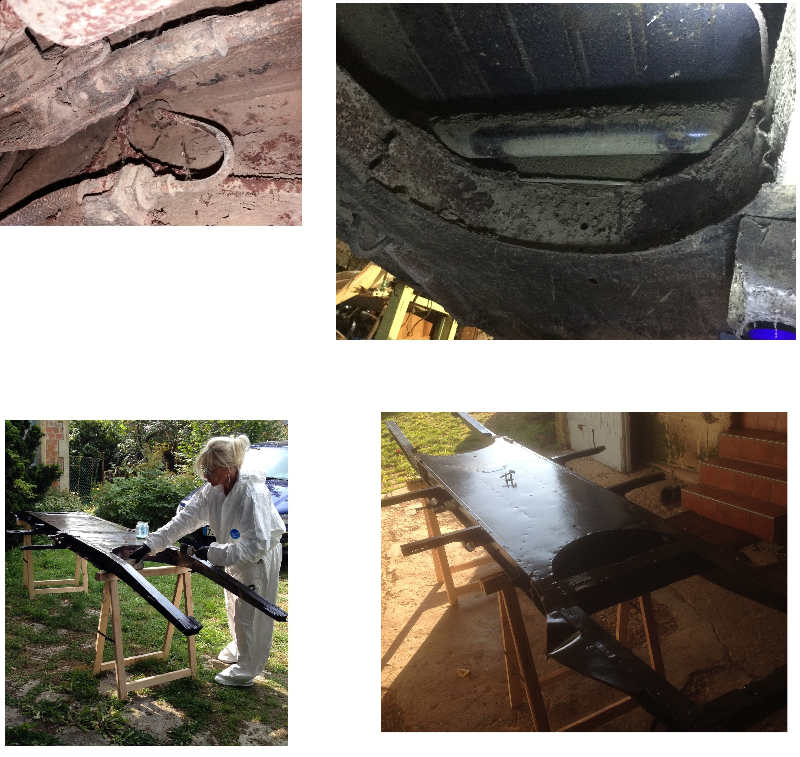 Après des heures et des jours de ponçage et l'aide de l' expert le chassis d'origine a été peint ...