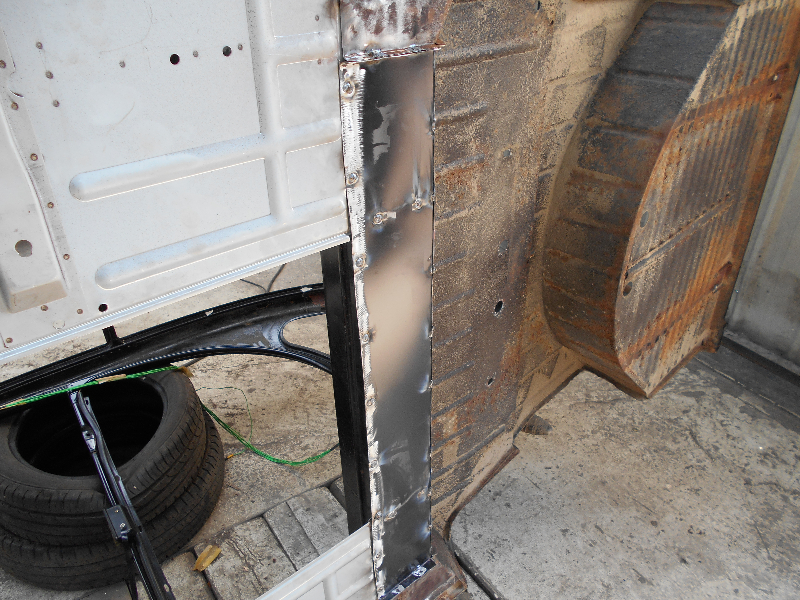 En revanche pour le remplacement pour le bas de la jupe plutot que de souder, on a coler !!! l'idée etant de dire que si on soude on affaibli la tole et donc que la rouille peut revenir plus rapidement.... bon on verra bien :lol: