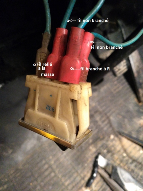 voila mon bouton warning avec les fils notés là ou ils vont...