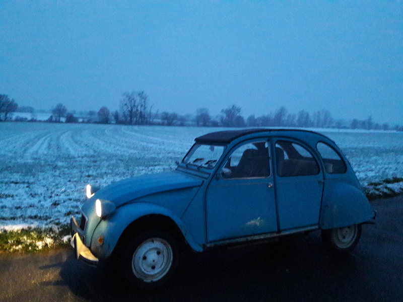 Je récapitule brièvement l'historique. J'ai acheté la 2cv qui ne roulait plus depuis 3/4ans, je suis allé la chercher sur un plateau, refait le moteur ( d'où la fuite ;)) et je roule avec depuis un peu plus de 2 ans pour des petits trajets. Elle a le poids de ses années sur elle mais elle reste correcte la belle.