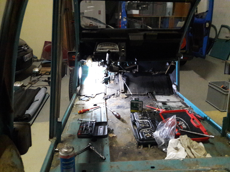 Today, pose de la caisse, passage du faisceau, début de remontage des liaisons vers le moteur et tentative de se rappeler comment se remonte le tableau de bord.