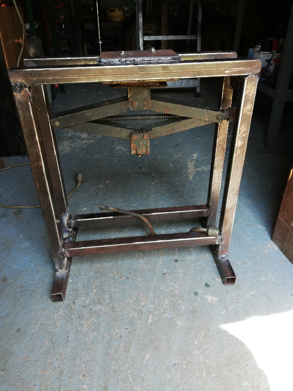 Une presse pour étalonner les ressorts de soupapes ( entre autres)faites avec de la récup de ferraille et un cric de 4 L.