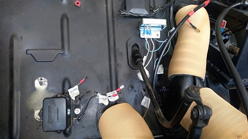 Voila une photo de mon régulateur actuel , il est fixé au tablier de la voiture, les branchements sont surlignés blancs…