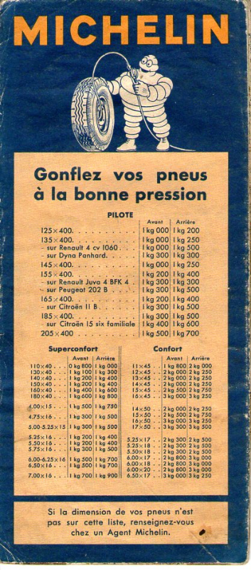 C'est ce qui est indiqué dans le tableau que j'ai envoyé : AZ de 1960 à 1964 et jusqu"à la fin de la série, pneus 125x15 : 1,250 et 1,400.lucky40 a écrit :![]()