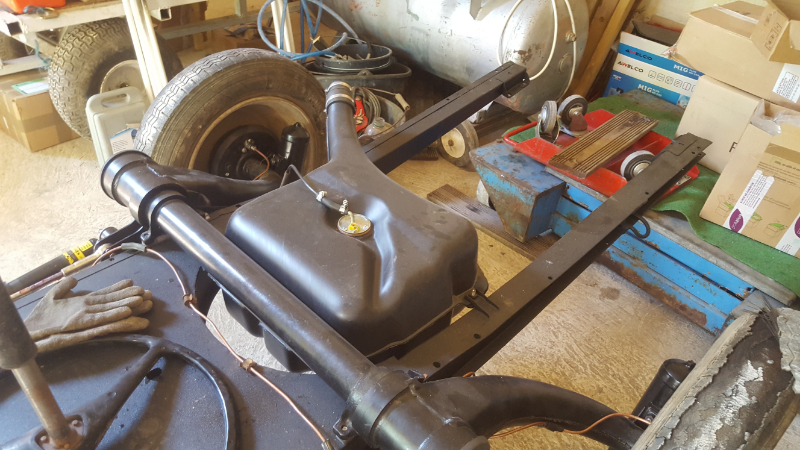 Nouveau chassis sur lequel j'ai du faire souder les branquards et les fixations d'amortisseur arrière.