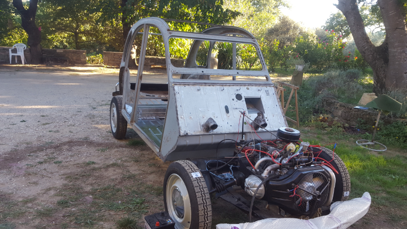 Nouveau chassis sur lequel j'ai du faire souder les branquards et les fixations d'amortisseur arrière.