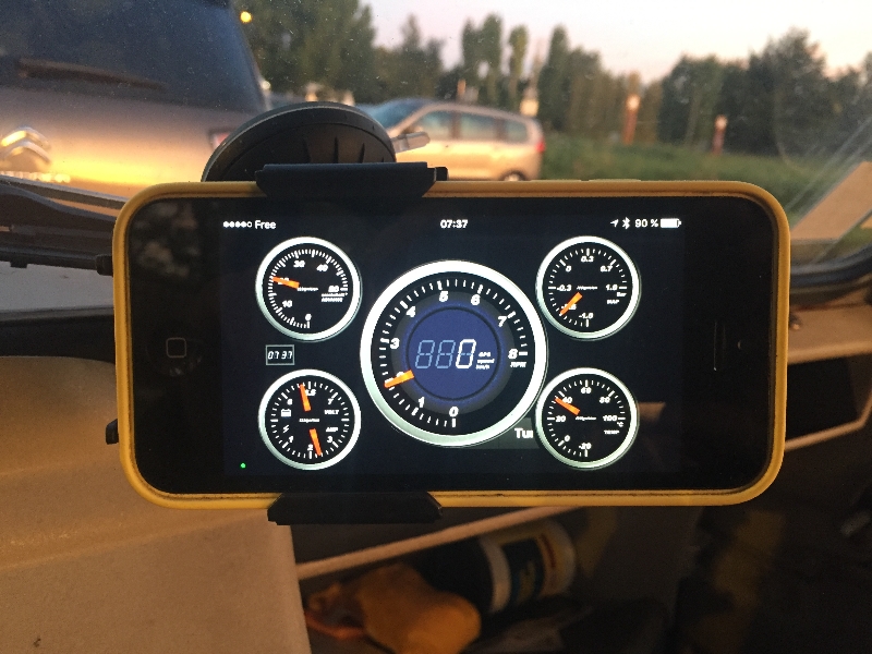 Fonctionne nickel, photo prise à l'arrêt ce matin avec moteur à 2000 tr/min, après un trajet de 13 km. La dépression est le cadran en haut à droite.