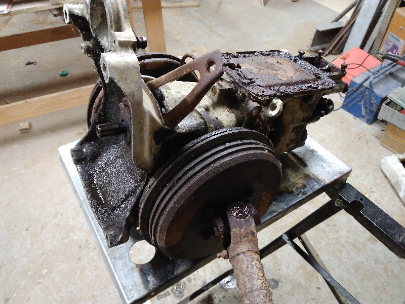 :salut: cet après midi, je lui ai passée un coup de karcher, et je viens de déposer le cul de boite. Finalement, elle n'est pas trop mal au niveau de la pignonerie (pas abimée) et le carter est aussi encore en bel état (la graisse l'ayant conservée).