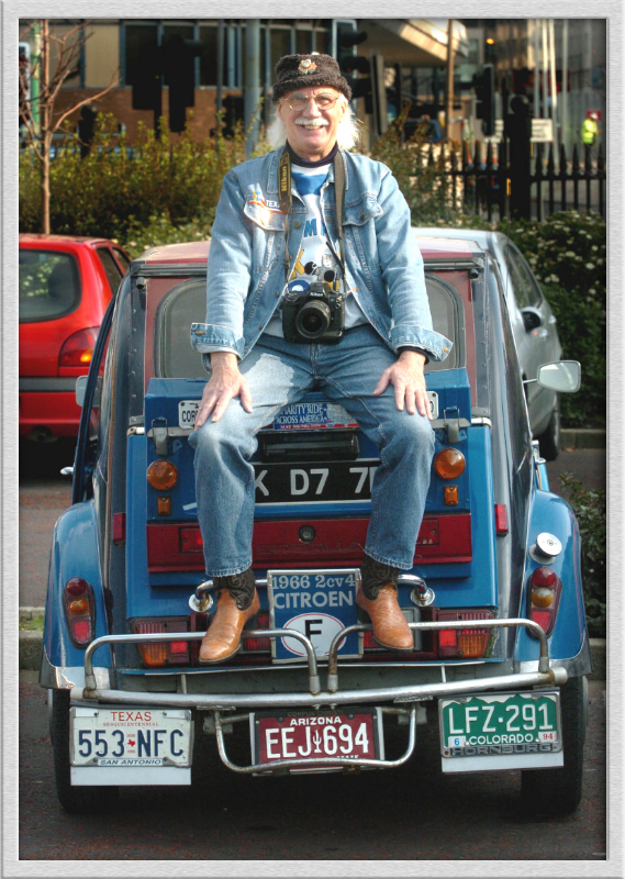 Your 2cv (deuch) is wonderful .... and you look like a playboy !