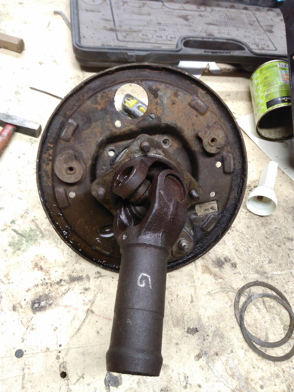 Pour le moment je continue sur ma boite et je me demandais comment retirer les flasques des tambours pour les restaurer ainsi que les roulements des cardans pour les changer. Je vois une sorte de circlip (mais je ne sais pas comment l'enlever), et un écrou maté, pour le moment inaccessible. :???: :???: