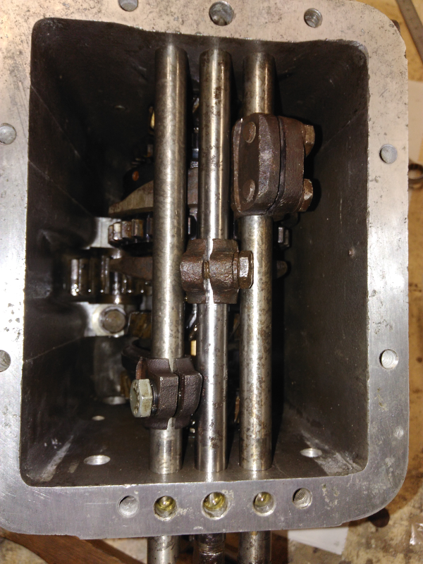 En revanche j'ai provisoirement remonté le cul de boite et le levier, et tenté de passer les vitesses. Résultat: la 1ère et MA ne passent pas. La 2nde passe bien. La 3ème avec difficulté mais on y arrive. La 4ème (surmultipliée) passe bien depuis la 3ème mais impossible de revenir au point mort ensuite.