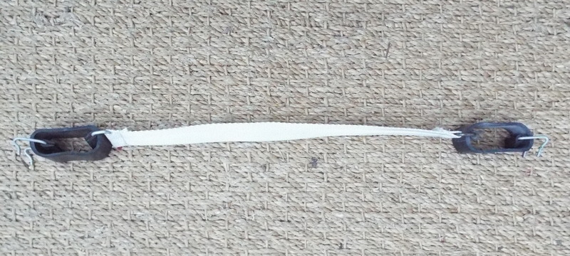Chaque sangla a à ses deux extrémité un anneau métallique cousu, dans lequel vient se fixer un anneau en caoutchouc, puis un crochet double. Sous les anneaux en caoutchouc au droit des anneaux métalliques et des crochets il y a une protection en caoutchouc.