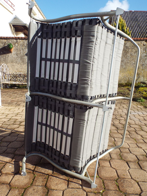 Ce qui fait en tout : 88 sangles, 176 anneaux métalliques, 176 anneaux caoutchouc, 176 crochets et 352 protections. Et il faut monter tout ça.