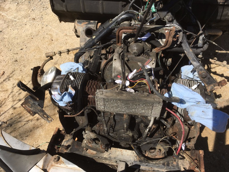 - fait un premier nettoyage du moteur (les soufflets de cardans étaient déchirés, y avait de la vieille graisse partout, l'huile de boîte avait allègrement dégouliné partout, etc...)