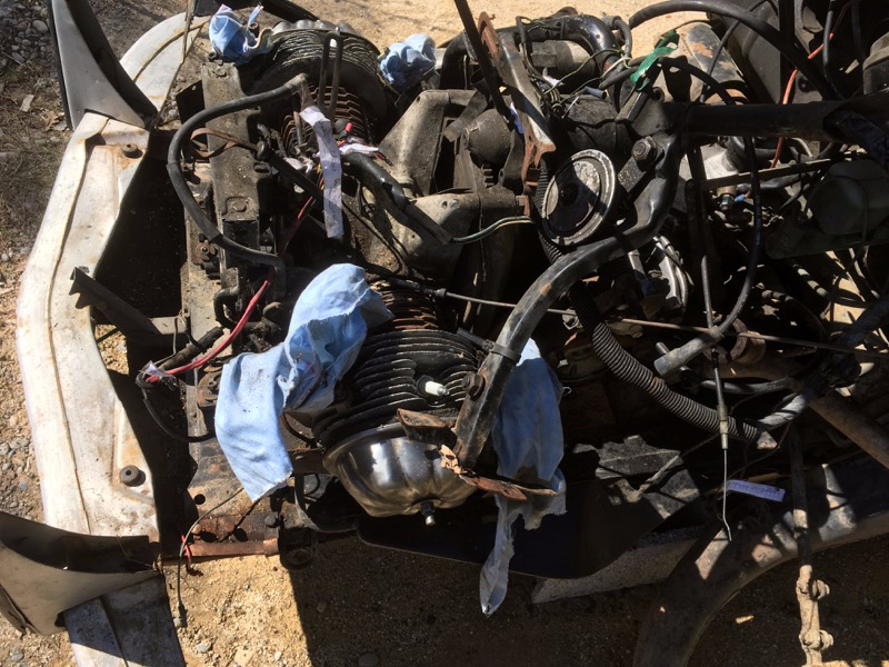- fait un premier nettoyage du moteur (les soufflets de cardans étaient déchirés, y avait de la vieille graisse partout, l'huile de boîte avait allègrement dégouliné partout, etc...)