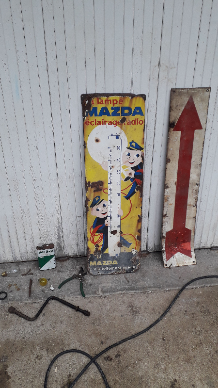En revanche, les plaques de renfort posées par l'ancien propriétaire sont des plaques émaillées de pub des années 70 ^^