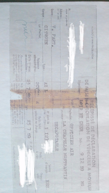 Au retour du Sénégal, pour la retraite, les arrières grand parents achètent la 2CV en 59.