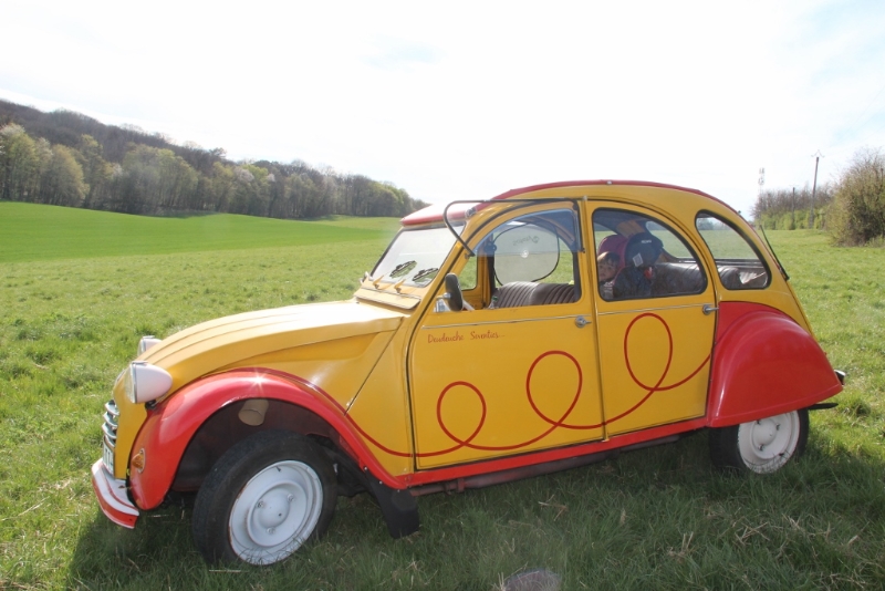 J'aime beaucoup celle -ci, elle rappelle les années 50 et 60, pic-nic et joie de vivre ...D'ailleurs cette 2cv est des années 50