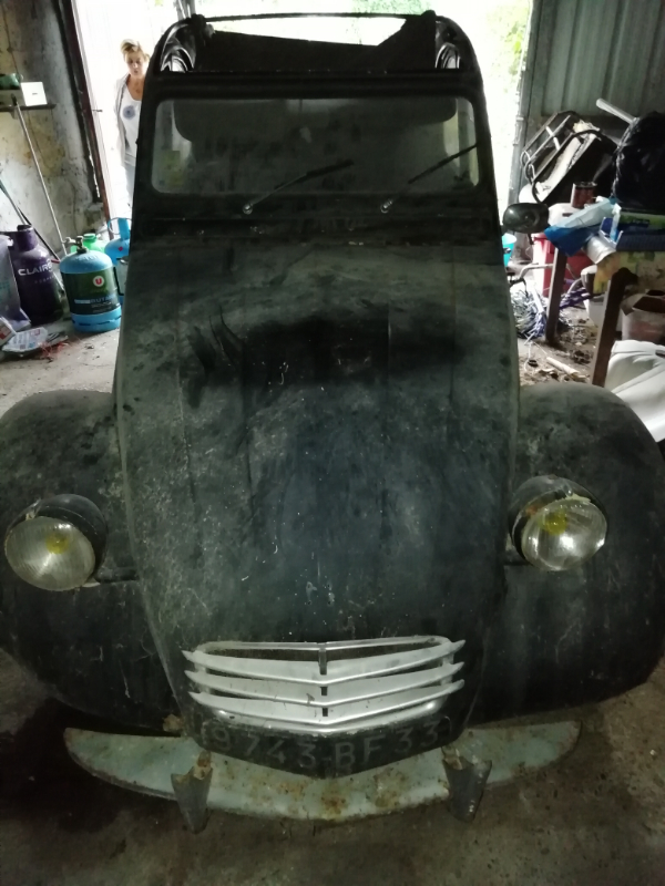 En effet, ma grand mere possède dans son garage une 2cv dont tout le monde a oublié son existence......bref, à un repas de famille, ça c’est fini sur un « si tu la veux, n’hesites pas, ça fera de la place »...donc, après analyse du véhicule, je me tente.