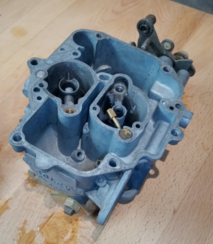 Et voilà c’est partie, démontage, j’ai récupéré un carbu double corps dans les fourrés chez mon beauf, direct bac à ultra son.