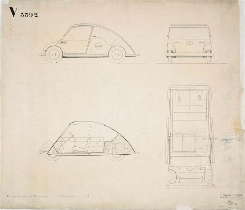 La chaux de fond m’évoque Le corbusier, qui a lui aussi étudié une voiture minimum.