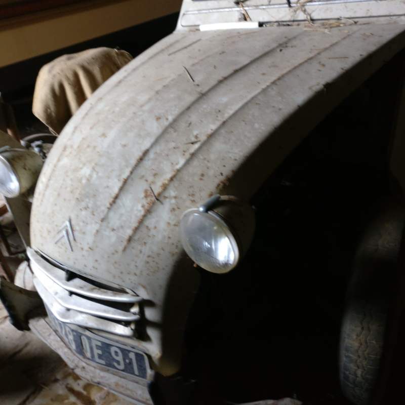Une grande partie de mon entourage, jusqu'au PDG de ma boite (une petite boite géniale où tout le monde se connait, mais ce n'est pas l'endroit pour en parler) connait ma passion pour cette créature à 4 roues et sait que, "le jour où j'aurais le temps, la place, et l'argent, je me referai une 2CV". Je n'ai pas forcément la place, quant au temps et l'argent, il y a toujours moyen de s'en arranger. C'est ainsi qu'il y a quelque semaines, un de mes collègues m'envoie un message sur Whatsapp et me parle de la 2CV qui est chez sa grand-mère, à moins d'une demi-heure de chez moi. Message accompagné des quelques photos ci-dessous.