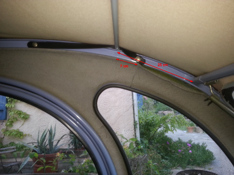 Hello, je reprends mon post, car je me suis aperçu qu'effectivement, sur ma nouvelle capote installée depuis la prise des ces photos, les cotes ne sont plus les mêmes ! En fait la traverse n'est pas placée au même endroit !